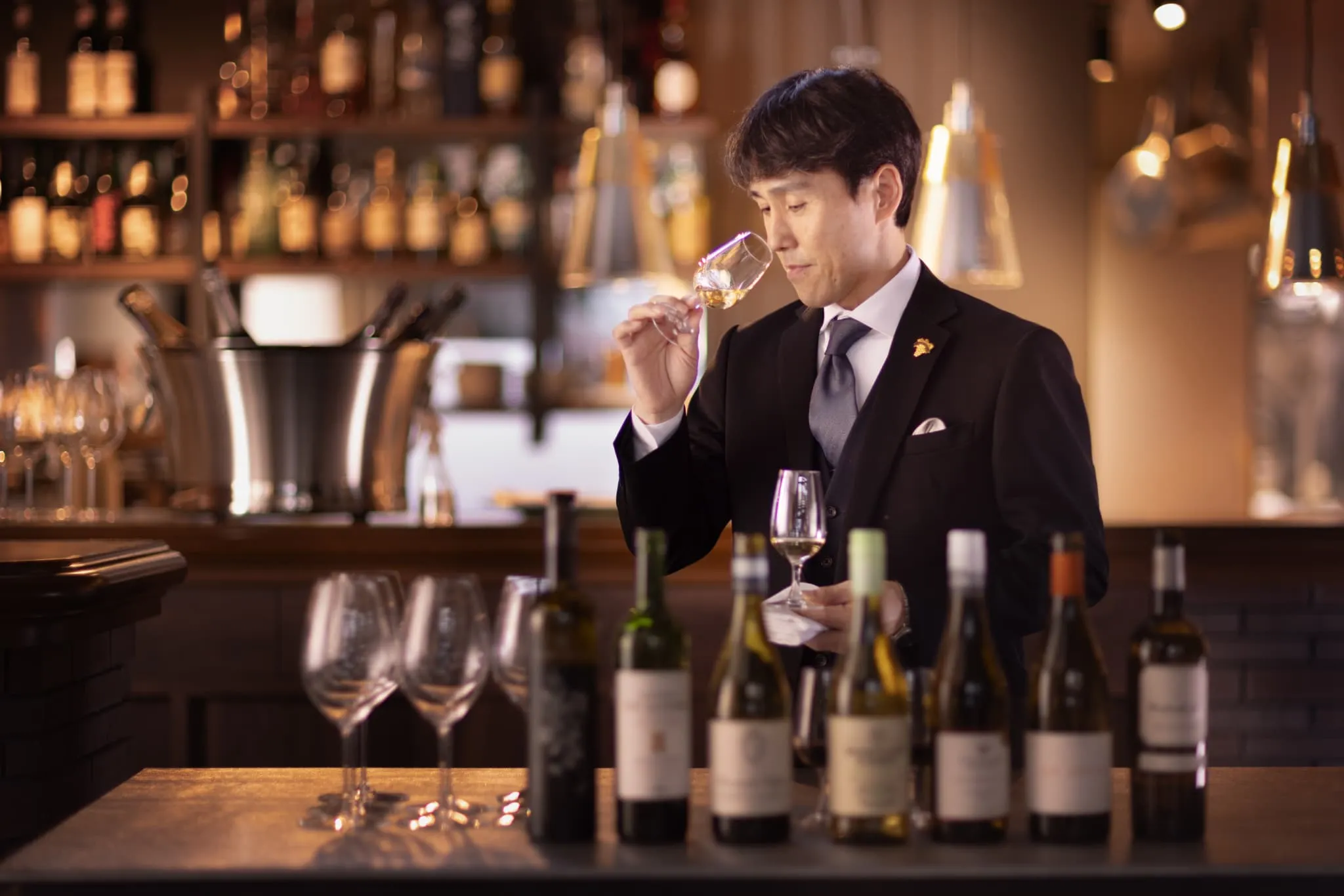 ソムリエとしては、お料理と調和する一杯を通して、おもてなしの心を表現し、ゲストの皆さまとの会話や笑顔を引き出せるよう心がけております。